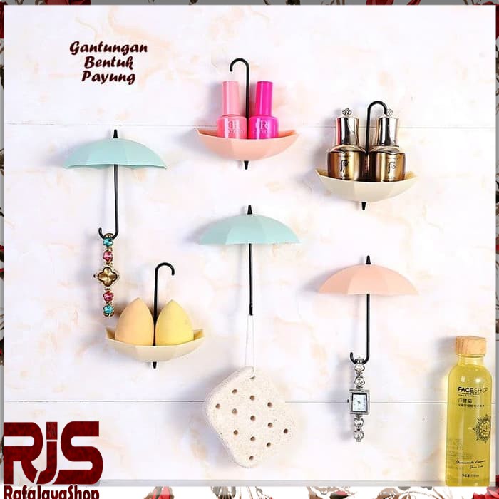 Gantungan unik berbentuk payung. Bisa dipakai dalam 2 posisi berbeda. Posisi payung di atas fungsinya untuk gantungan pernak pernik seperti aksesoris atau pernak pernik rumah dan dapur. Posisi payung di bawah bisa dipakai untuk tempat uang koin dan pernak pernik aksesoris, unik loh