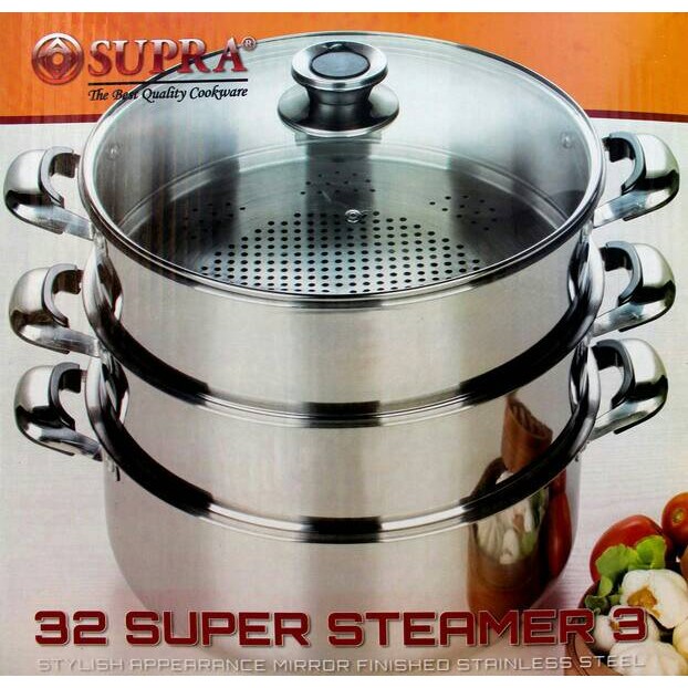 Jual Murah Perlengkapan di Kabupaten Kepulauan Mentawai [supra]panci Pengukus 3 Susun - Supra Steamer 32cm - Stainless Steel dari Supra Kab. Tangerang